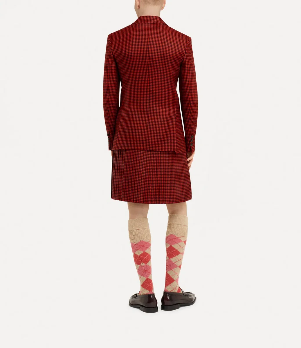 Ons kenmerkende jasje met één knoop is opnieuw ontworpen in de ginghamwol van dit seizoen, geweven in levendige tinten en gesloten met een enkele knoop aan de voorkant. Het silhouet wordt omlijst door scherpe revers en loopt uit in een strakke zoom met splitten aan de achterkant, compleet met onze traditionele orb-jacquardvoering.