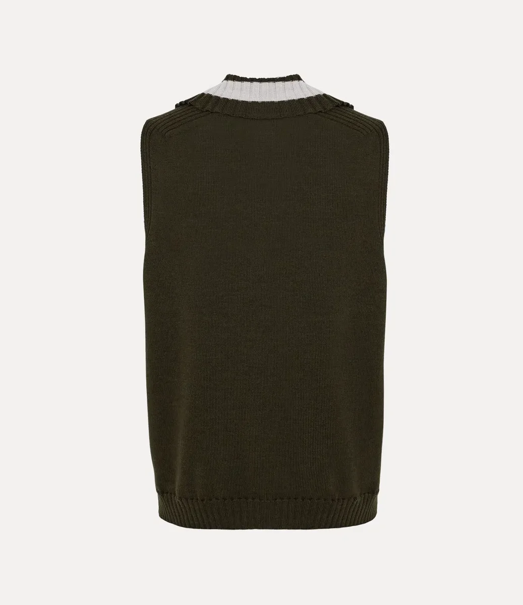 Ons Fisherman-vest is gemaakt van zachte wol en heeft een diepe V-hals, omlijst met dubbele witte strepen voor een sportief accent. Het vest is ontworpen met verlaagde armsgaten voor een ontspannen, casual pasvorm en is afgewerkt met een rechte geribde zoom voor een gestructureerd silhouet.