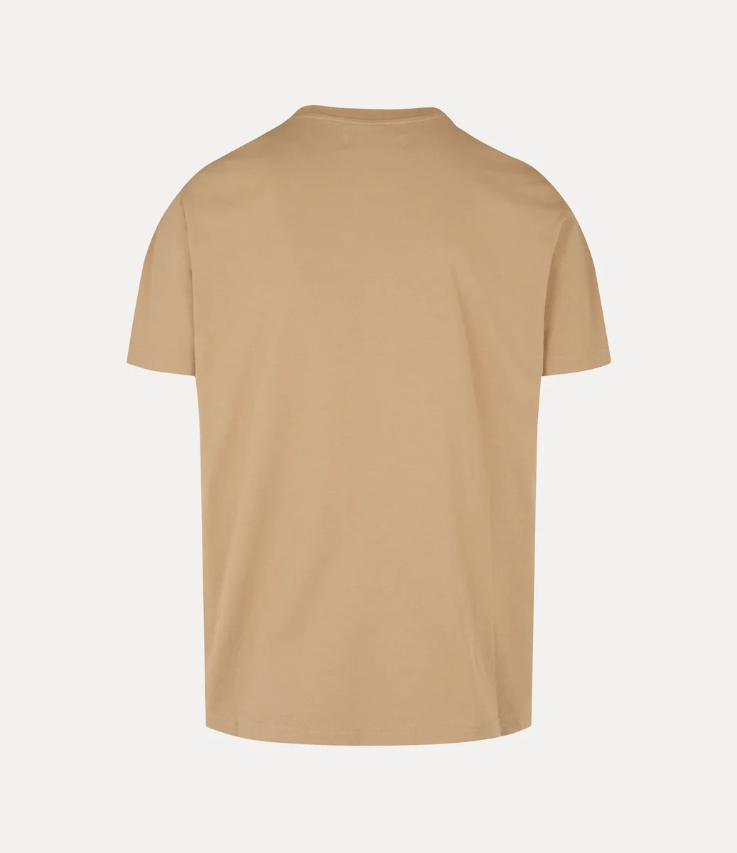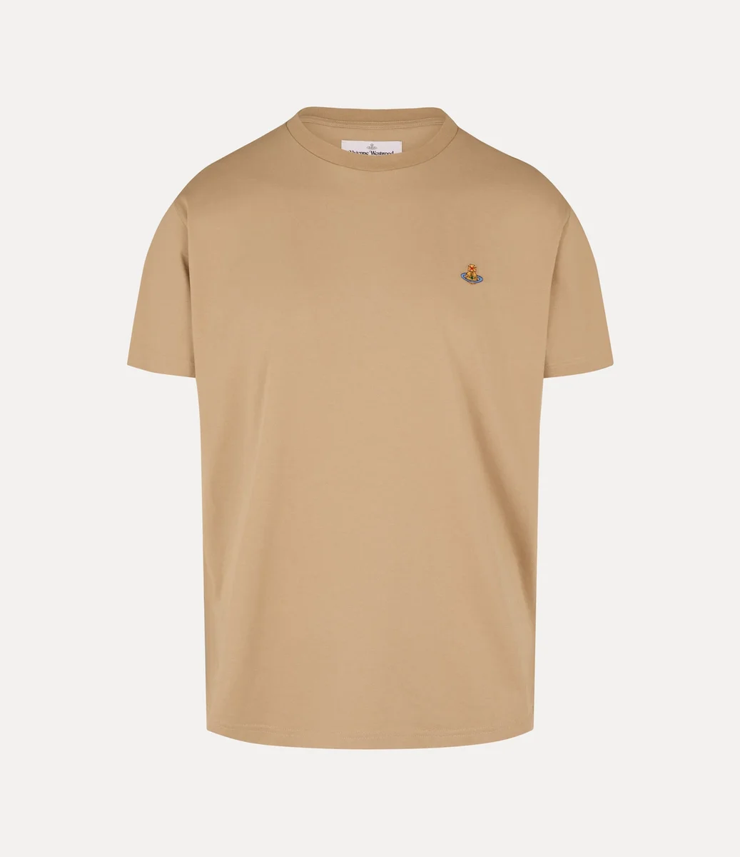 Ons klassieke T-shirt heeft een zacht katoenen silhouet, korte mouwen en een ronde halslijn. Het kledingstuk is voorzien van een veelkleurig orb-borduursel aan de linkerkant van de borst, wat synoniem staat voor Vivienne’s visie om traditie mee te nemen naar de toekomst.