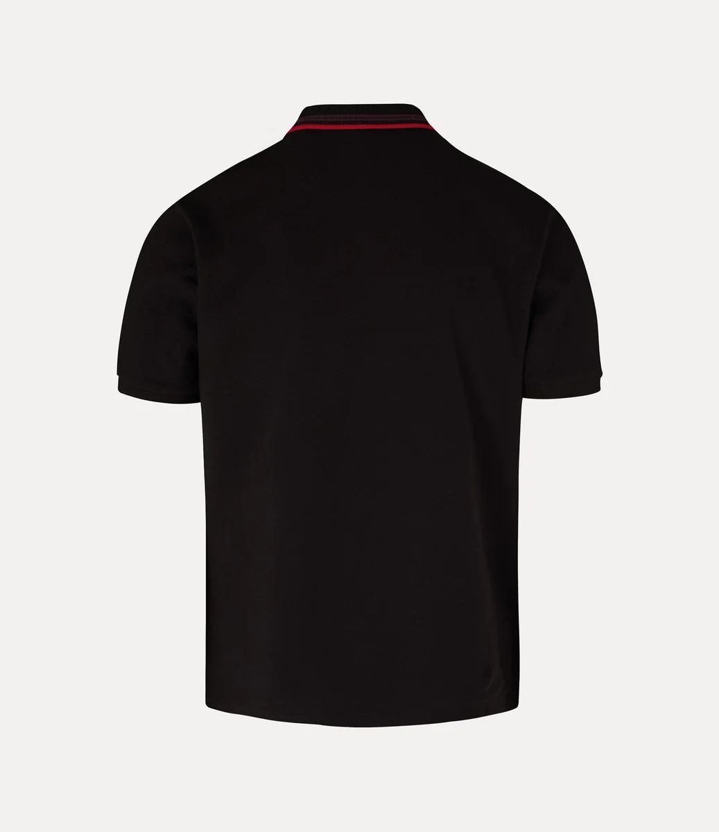 Onze klassieke polo is dit seizoen opnieuw ontworpen met glanzende parelmoeren knopen en gestreepte details op de kraag. Het kledingstuk is gemaakt van zacht katoen en heeft een geborduurd bolmotief op de linkerkant van de borst, dat symbool staat voor traditie, omringd door de hemelse ringen van Saturnus, die de toekomst vertegenwoordigen.
