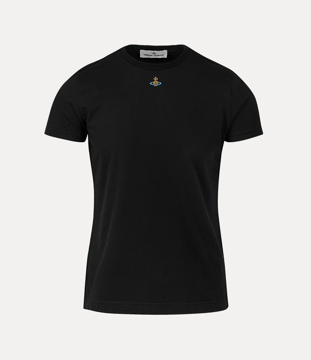 Ons Orb Peru T-shirt met korte mouwen en geribde boorden heeft een ronde hals. Het borduursel op de borst is geïnspireerd op ons orb-motief, dat in de jaren 80 door Vivienne Westwood is ontworpen als symbool voor het meenemen van traditie naar de toekomst.