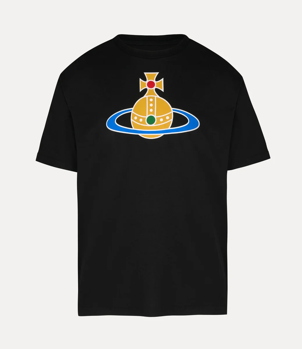 Ons Oversized Orb Classic T-shirt is gemaakt van lichtgewicht katoen, heeft een ronde halslijn, korte mouwen en een rechte zoom. Het shirt is voorzien van een veelkleurig orb-motief op de borst, dat symbool staat voor Vivienne’s visie om traditie naar de toekomst te brengen.