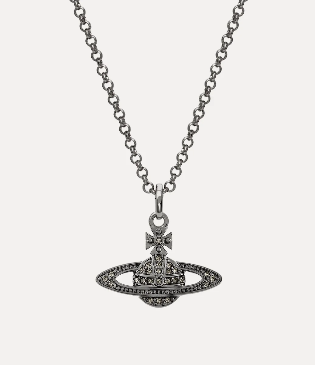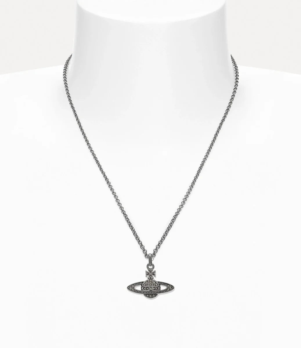 Het orb-silhouet van het huis staat synoniem voor Vivienne’s visie om traditie mee te nemen naar de toekomst. De Man. Mini Bas Relief Orb Pendant ketting heeft de vorm van een orb, versierd met zwarte kristallen details en een gunmetal-kleurige plating.