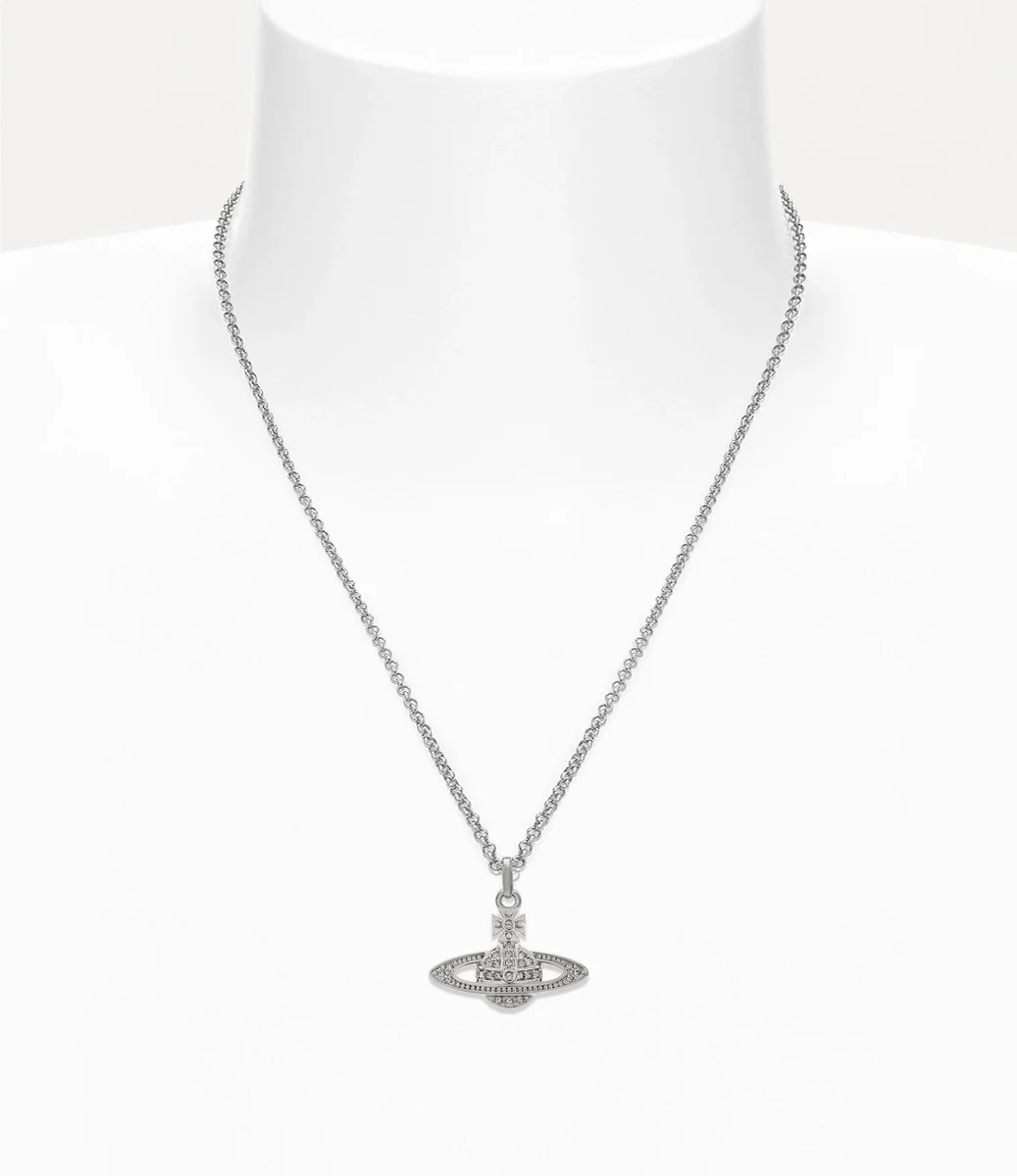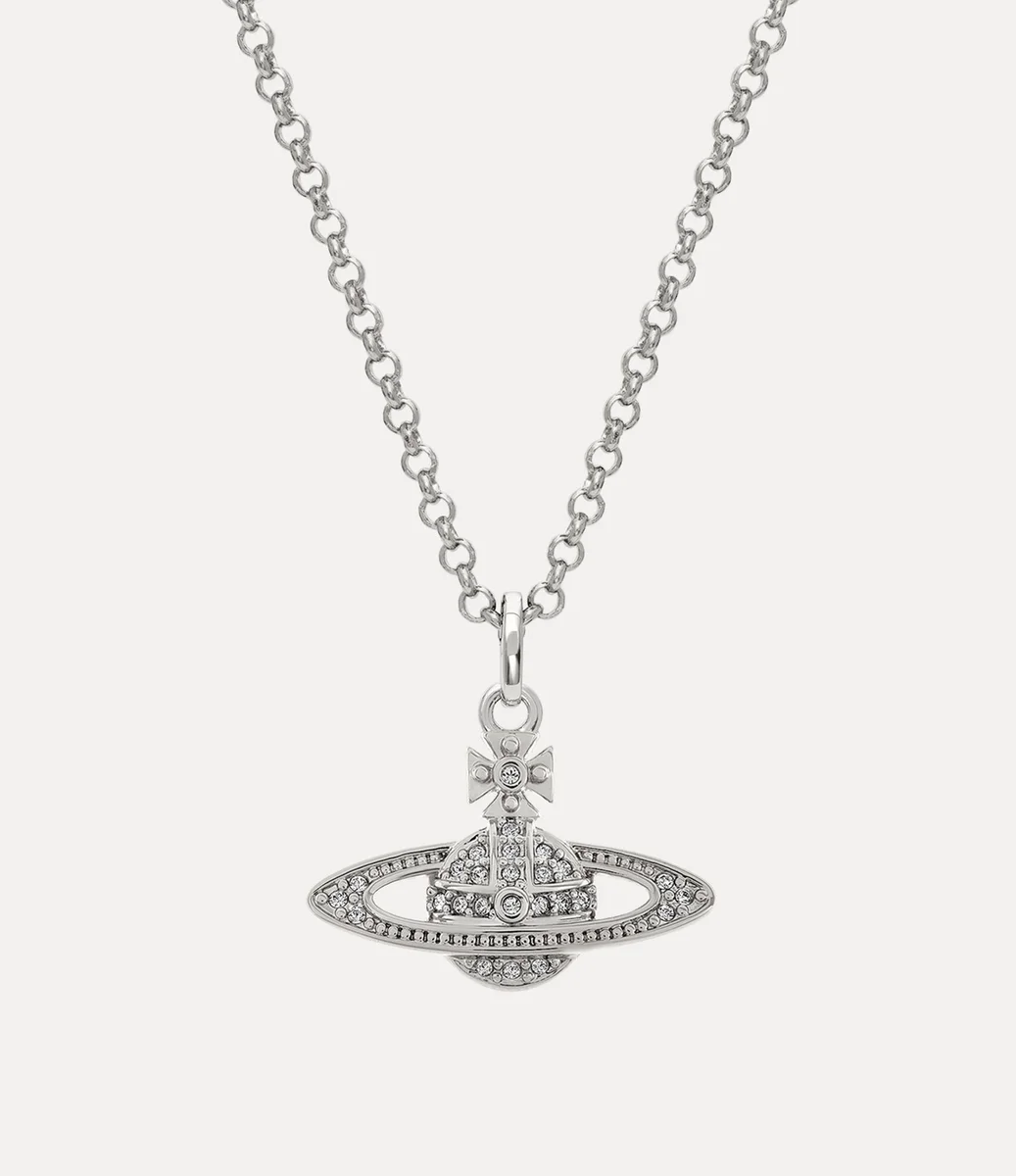 Het orb-silhouet van het huis staat synoniem voor Vivienne’s visie om traditie mee te nemen naar de toekomst. De Man. Mini Bas Relief Orb Pendant ketting heeft de orb-vorm en is versierd met witte kristallen details en een zilverkleurige coating.