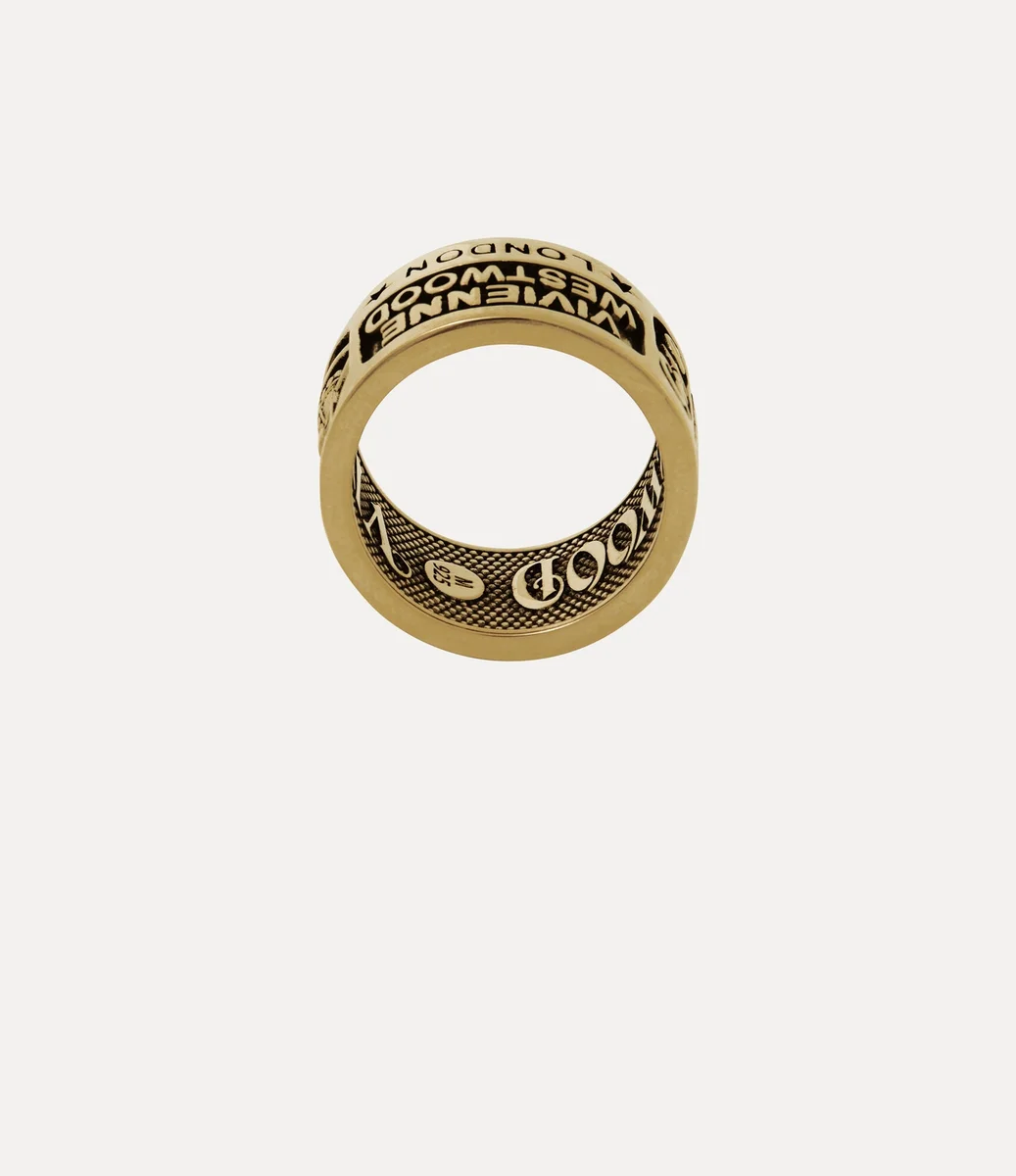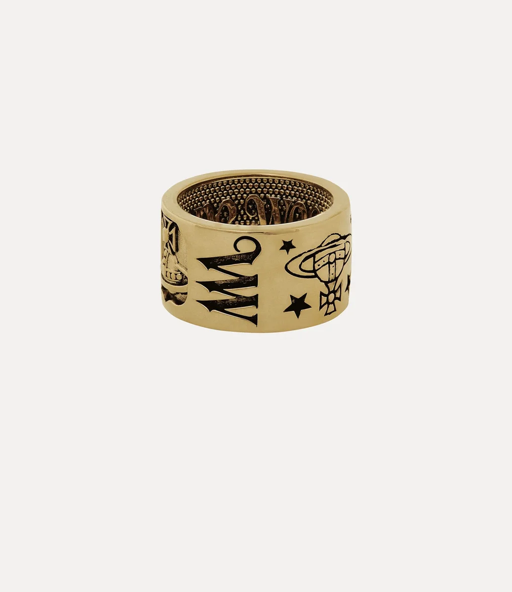 De Lancelot-ring, vervaardigd van verguld gerecycled zilver, is gegraveerd met kenmerkende zinnen en motieven die zijn geïnspireerd op de geschiedenis van het huis. De brede, opvallende band is afgewerkt met details met een antiek effect, terwijl de binnenband is voorzien van een reliëfinscriptie ‘Vivienne Westwood’ in het kenmerkende lettertype.